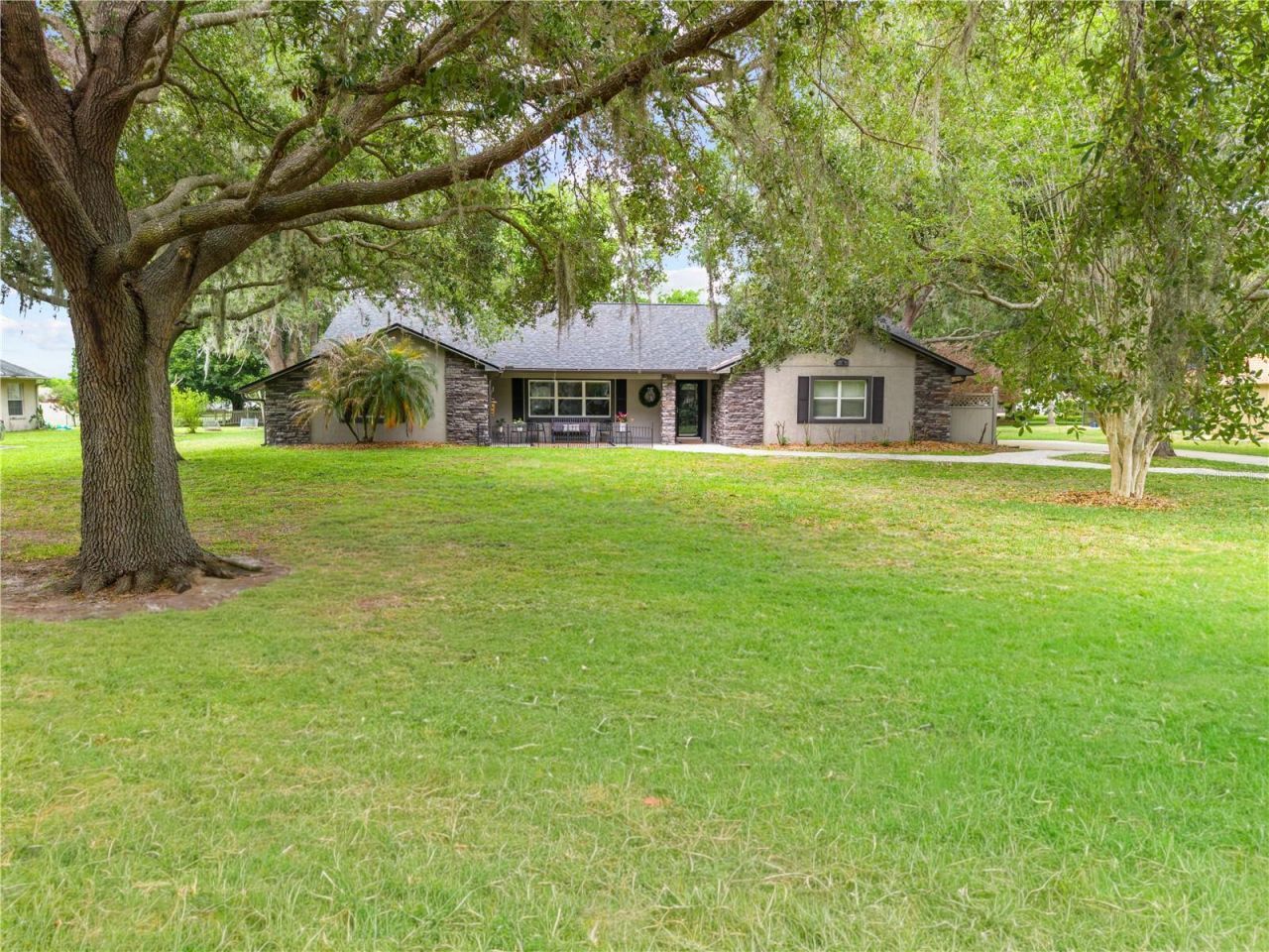 In search of a new family to love this exceptional home as much as the current owners do. This beautifully maintained FOUR-bedroom (including two ensuites), THREE-bath pool home sits on over a 1/2-acre lot in the desirable gated community of Camelot. Designed for both everyday living and entertaining, this home features a formal living room, formal dining room, spacious family room, and an expansive 20x30 bonus room with three closets-perfect as a homeschool classroom, in-law suite, or game room. The bonus room also has four sliding glass doors that open out to the pool deck. The updated kitchen showcases custom solid wood cabinetry with upper and lower crown molding, pull-out drawers, under-cabinet lighting, granite countertops, backsplash, and newer stainless appliances including a double convection oven range, microwave, and dishwasher. The primary ensuite offers pool access, walk-in closet, dual sinks, custom cabinetry, granite counters, new toilet, and newly remodeled shower, while the second en-suite bath includes dual sinks, custom cabinetry, granite counters, tub/shower combination and new toilet. Durable Wilsonart commercial-grade flooring runs throughout the home (excluding bathrooms which have 18x18 ceramic tiles), complemented by crown molding, 51/4 baseboards, knockdown ceilings, fresh interior paint (2023), additional canned lighting and new ceiling fans in all rooms except the dining. The third bath conveniently serves as a pool bath with custom cabinetry, granite counters, tub/shower combination, and door with built in blinds. Enjoy Florida living in the 17x30 screened pool with extended paver pool deck, outdoor shower, and covered lanai with two ceiling fans. Exterior highlights include a charming front porch, paver walkway, rain gutters, and storm door, plus an oversized 24x26 garage with attic access, some plywood flooring and light. Ring doorbells are installed on front porch, driveway, and back porch. Major updates include a new roof (2022), A/C (2023), drain field (2021), water heater (2021), and a transferable termite bond. The home and back porch are wired for surround sound but have not been installed. Ideally located near the Florida Turnpike, shopping, and dining-schedule your private tour today!